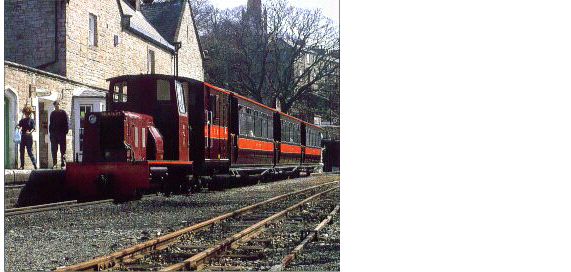 Foto: locomotiva diesel 0-2-0 n°9, costruita da Hunslet a Leeds nel 1952, con un treno di tre carrozze e un bagagliaio.